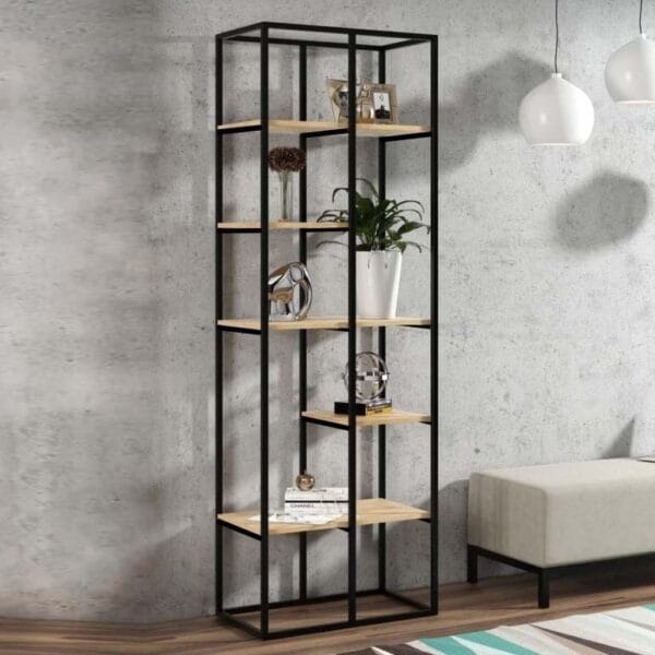 Стелаж для дому/книжний, каркас металевий у стилі Лофт, ДСП дуб сонома – StepLoft Rack-181