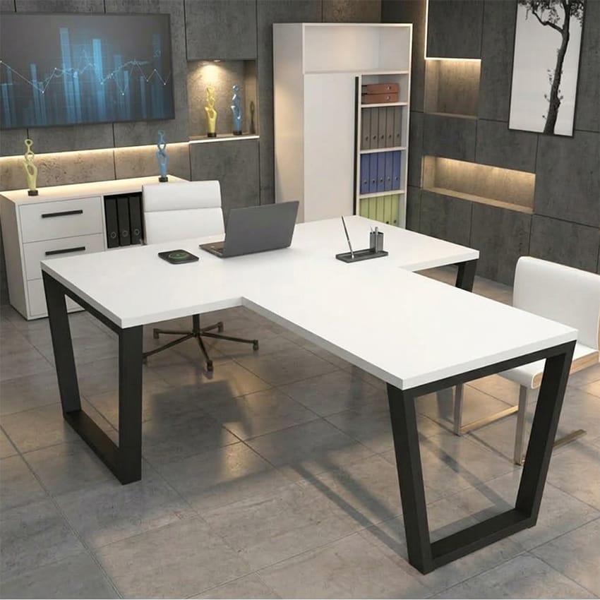 Стіл керівника/офісний у стилі Лофт металевий каркас, ДСП, чорний+білий | StepLoft Comp-table-237