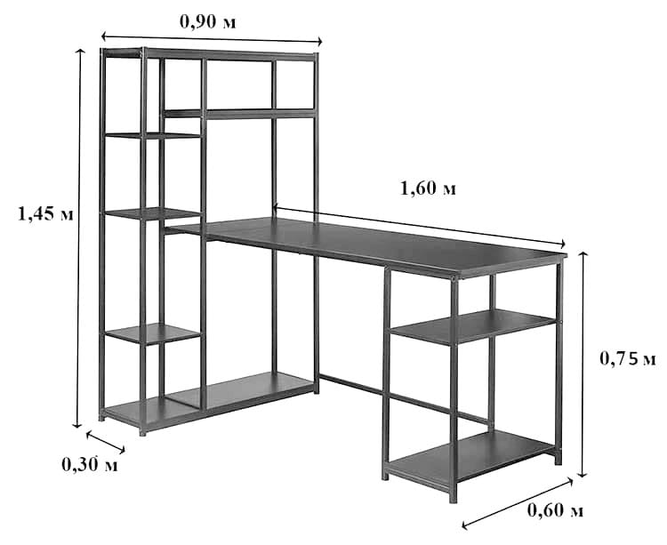 Стіл має додатковий стелаж для речей, завдяки якому він стає максимально зручним та функціональним. Каркас зроблений із металевого профілю 20*20мм. Завдяки металевому каркасу стіл дуже міцний та стійкий.