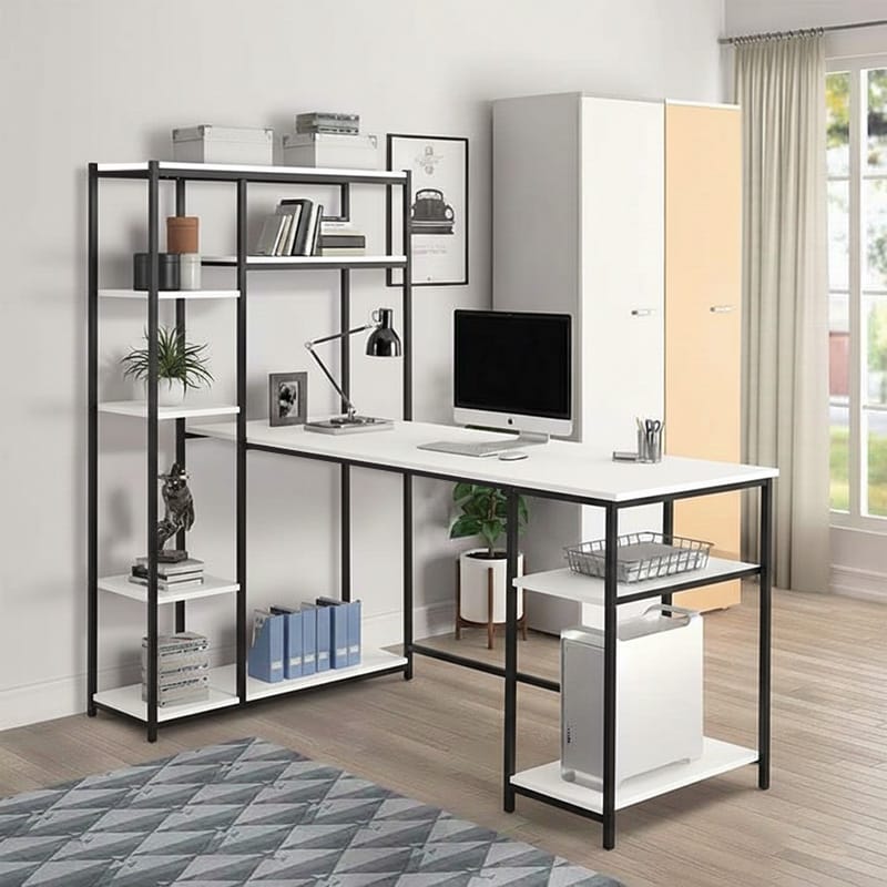 Стіл має додатковий стелаж для речей, завдяки якому він стає максимально зручним та функціональним. Каркас зроблений із металевого профілю 20*20мм. Завдяки металевому каркасу стіл дуже міцний та стійкий.