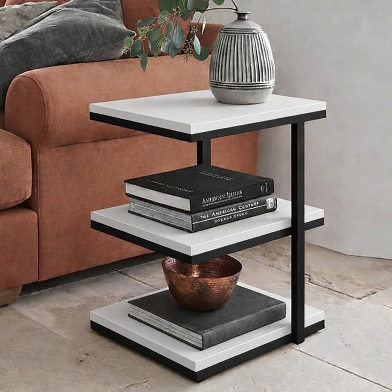 Журнальний/кавовий столик у стилі Лофт з полицею каркас металевий, білий – StepLoft Cof-tab-146